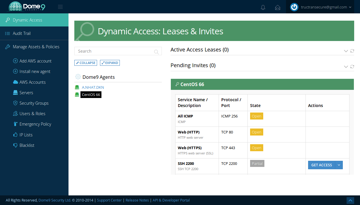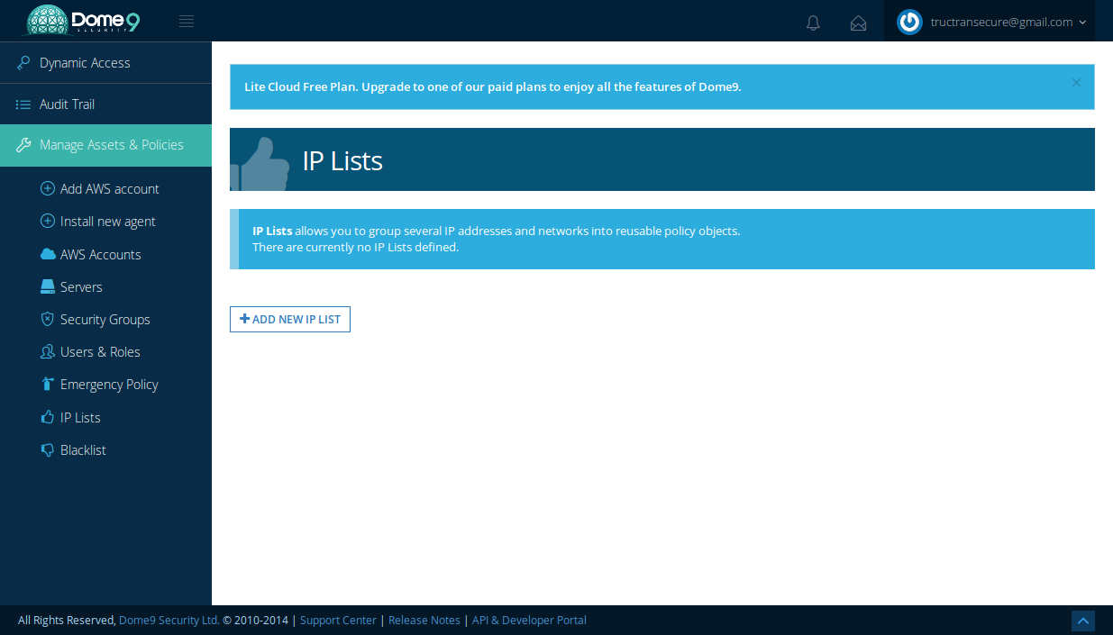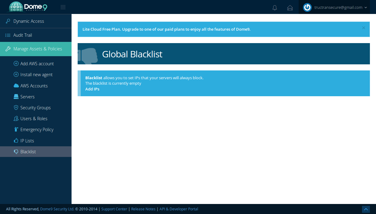 Sau khi đăng ký thành công và đăng nhập thì Dome9 sẽ chuyển đến cửa sổ giao diện như hình dưới, tương đối trực quan.