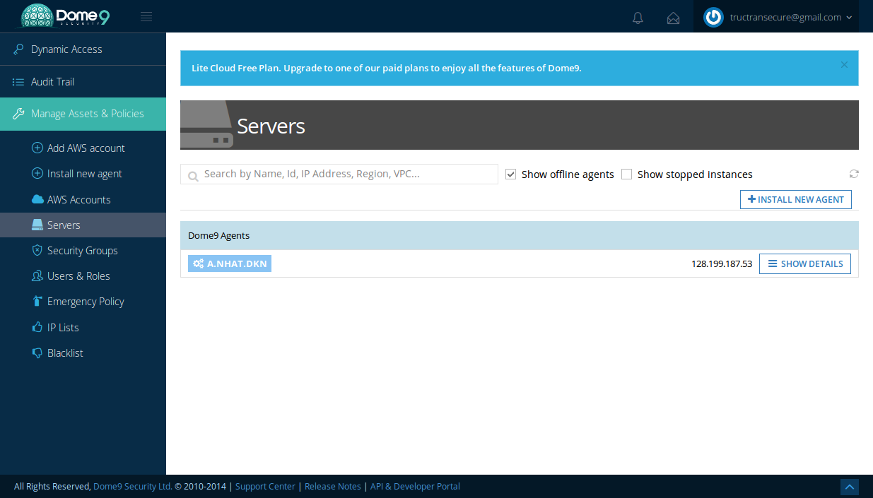 Thể hiện các server đã cài đặt Dome9 Agent.