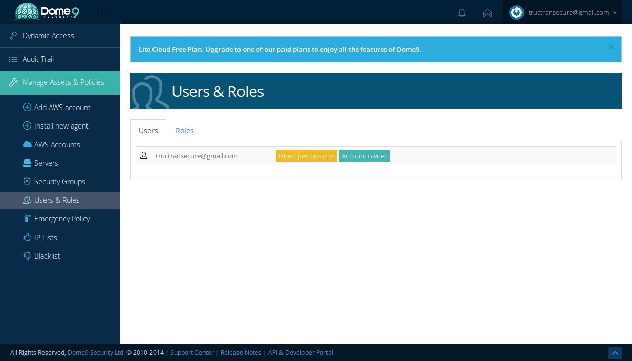 Cho phéo tạo người dùng tương ứng với các nhiệm vụ định sẵn. Do tài khoản Dome9 miễn phí chỉ cho dùng 1 tài khoản nên cũng chẳng có gì nhiều để nói ở đây.