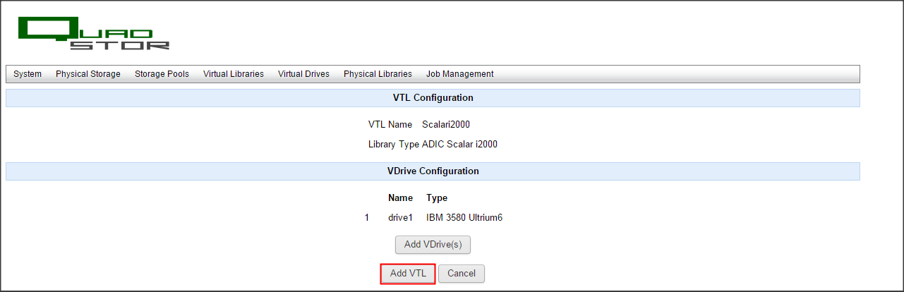 QuadStor hỗ trợ giả lập rất nhiều Tape Library của các hãng như HP, IBM, Quantum…Việc lựa chọn tùy thuộc vào sở thích cá nhân. Ở bài viết này mình sử dụng Quantum Scalar i500 và Scalar i2000. Việc cài đặt driver cho các tape library này cũng khá dễ dàng và nhanh chóng