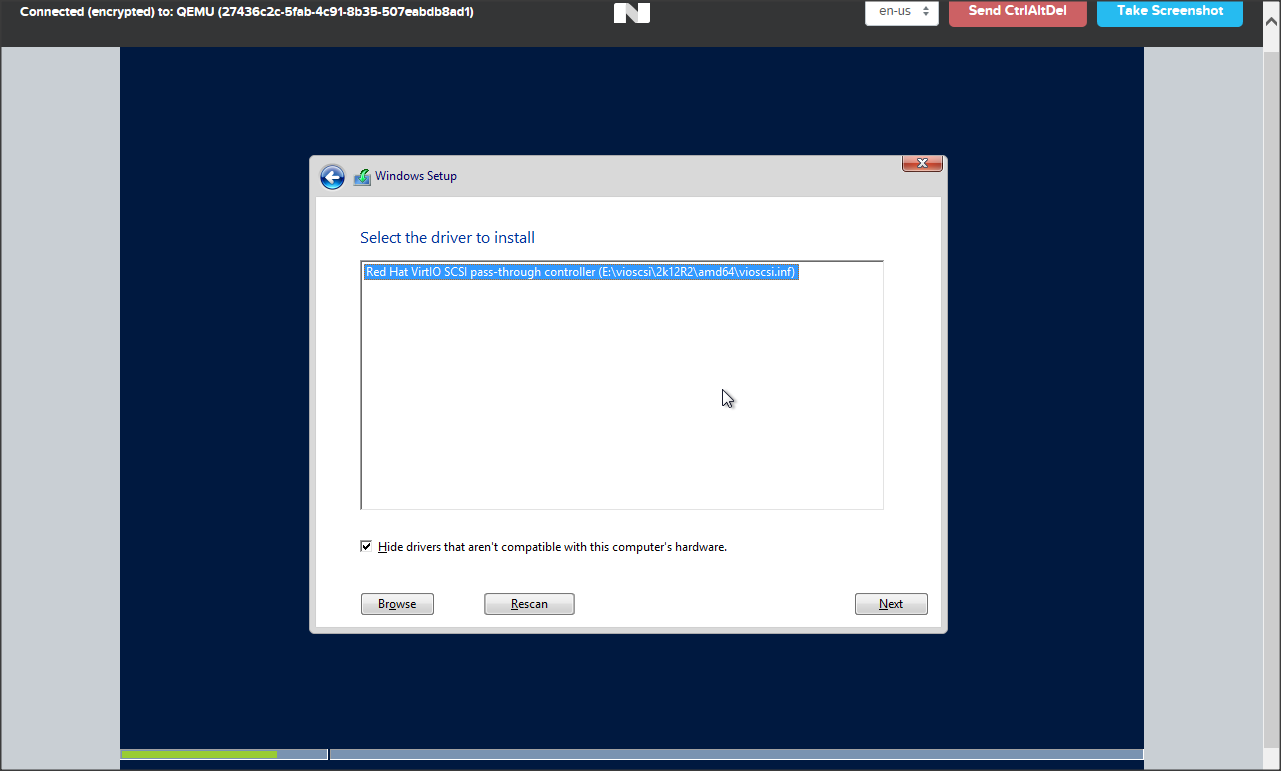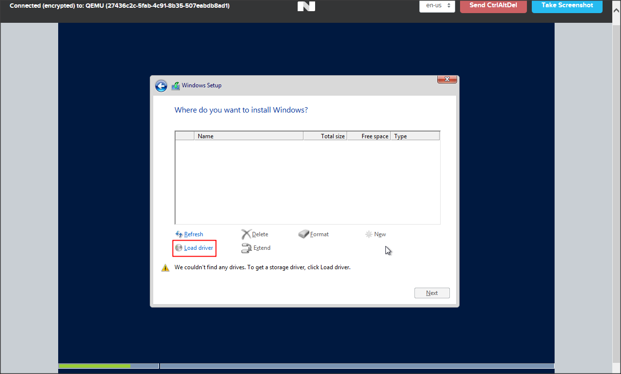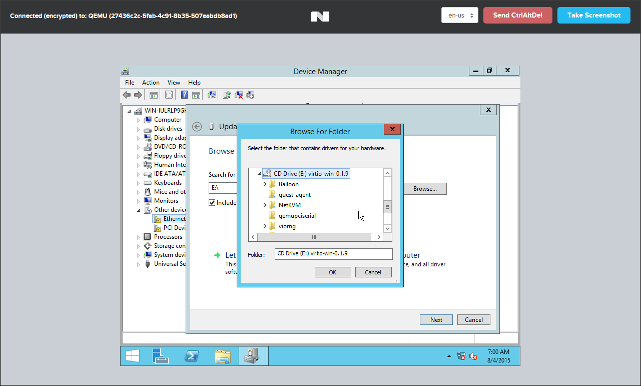 Do Windows không tự động nhận phần cứng ảo hóa KVM do đó chúng ta cần load driver từ đĩa driver đã tải từ ban đầu