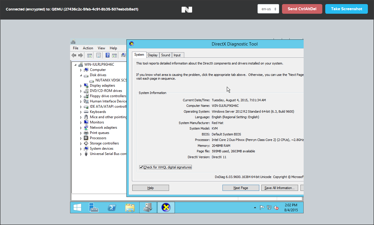 Hoàn tất việc cài đặt máy ảo Windows, trong phần tiếp chúng ta sẽ sử dụng các tính năng khác của Acropolis như tạo snapshot hoặc clone máy ảo