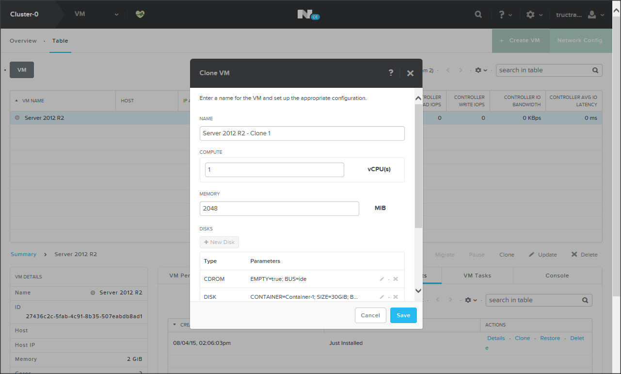 Thông tin máy ảo chạy dưới nền tảng ảo hóa Acropolis của Nutanix