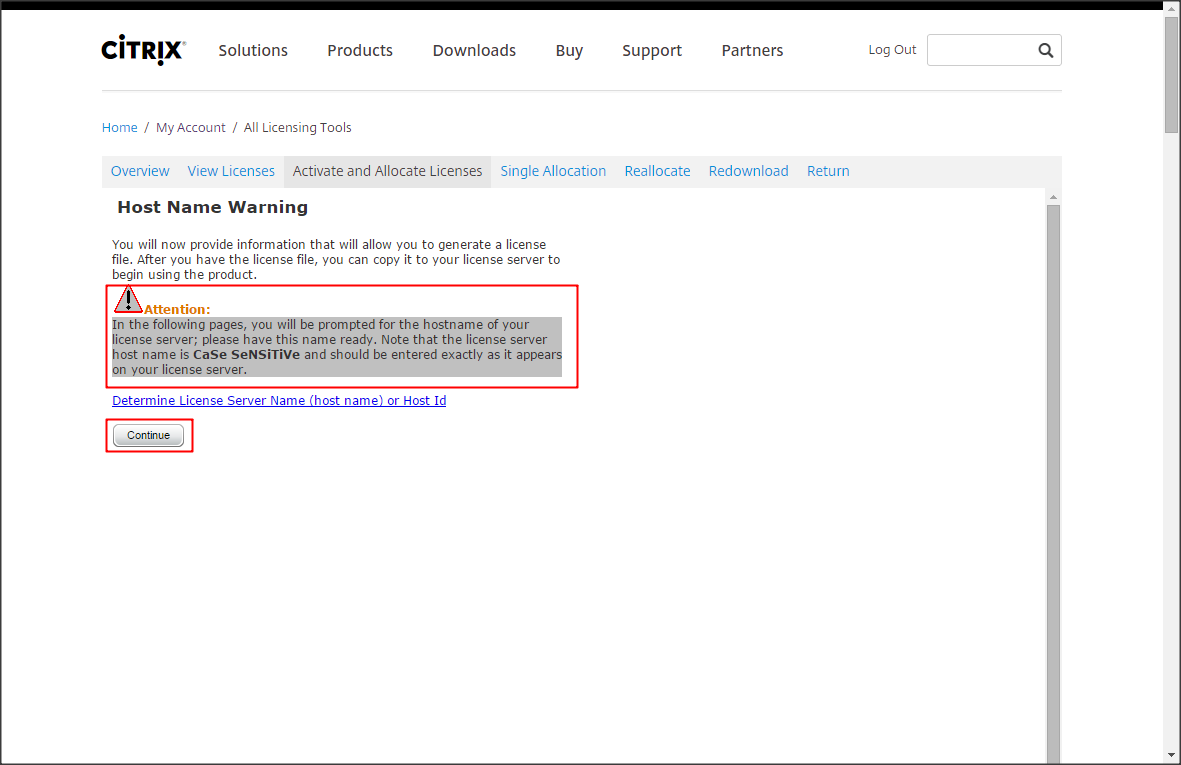 Một cảnh báo về hostname, nội dung là tên máy chủ bản quyền phải tương đồng với quy trình tạo file bản quyền, phân biệt cả chữ hoa chữ thường.