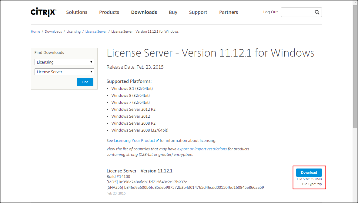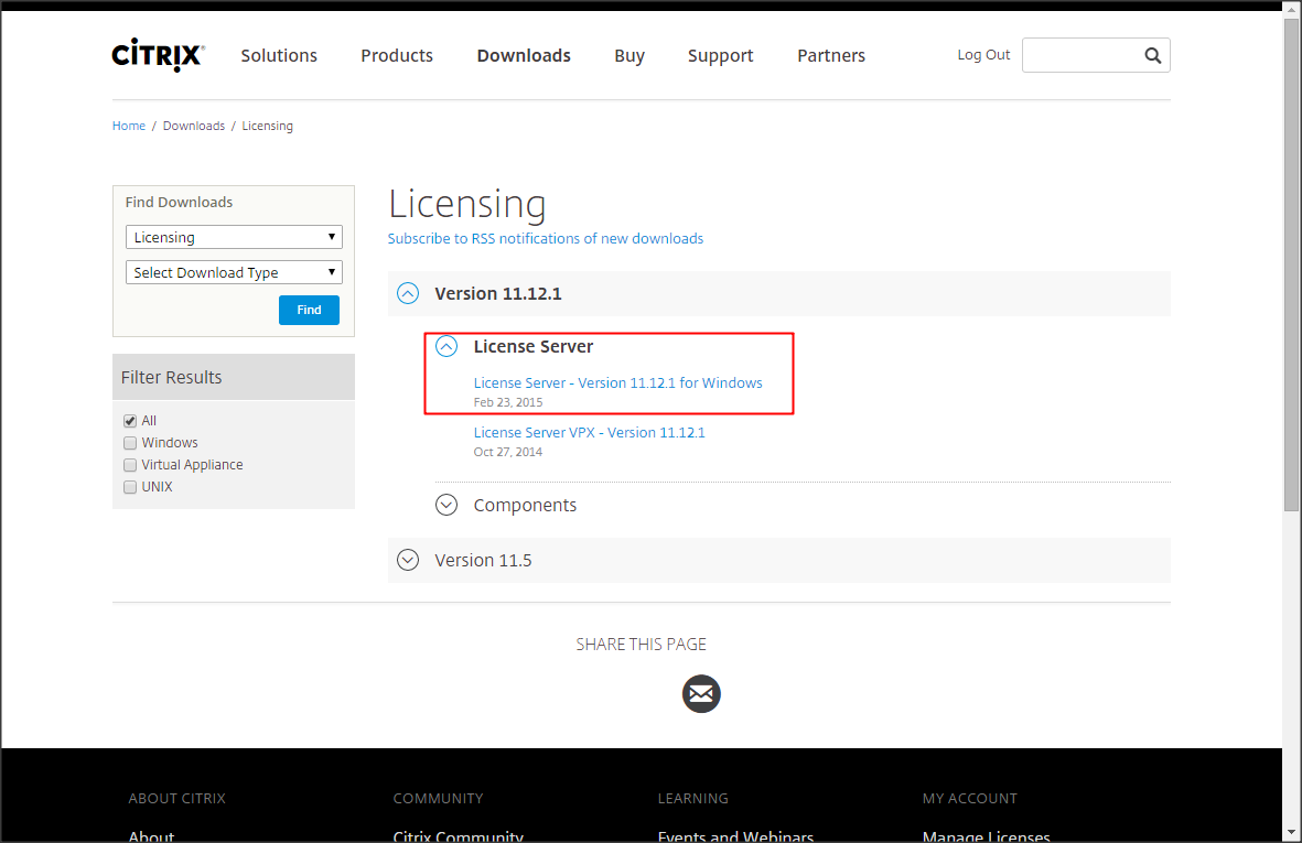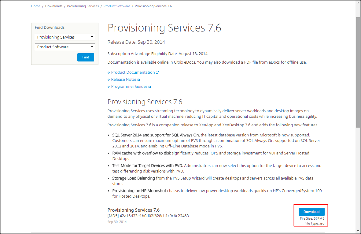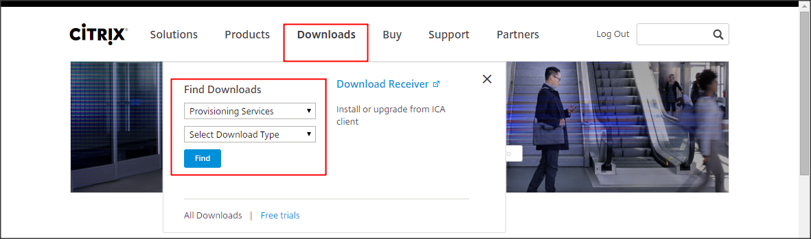 Để tải phần mềm các bạn chọn nút Download ở góc trên và chọn Find Downloads tương ứng cho các sản phẩm cần tải. Trong bài này chúng ta sẽ tải License ServerCitrix Provisioning Services 7.6