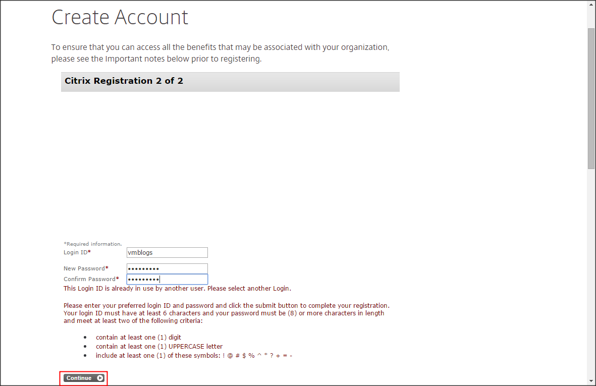 Điền đầy đủ các thông tin yêu cầu và click chọn Continue