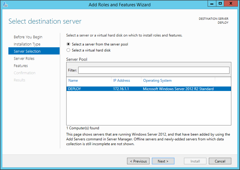 Lựa chọn server để cài đặt => Next