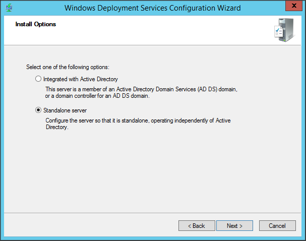 Chọn WDS là Standalone server => Next