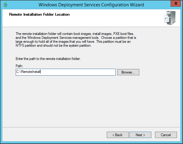 Thư mục chứa các thông tin cho WDS => Next