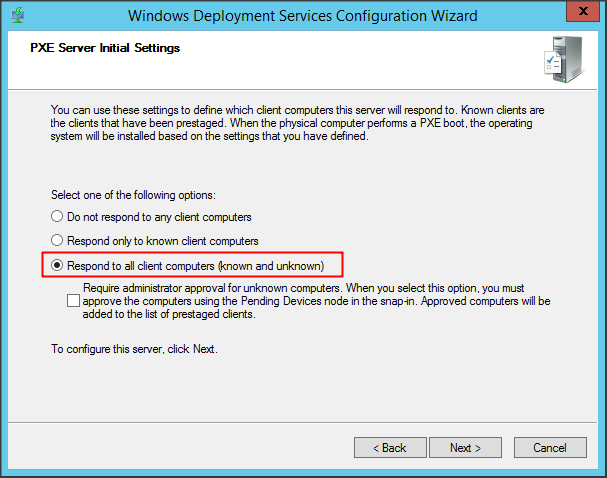 Tùy chỉnh cho phép WDS server phản hồi yêu cầu boot PXE của client
