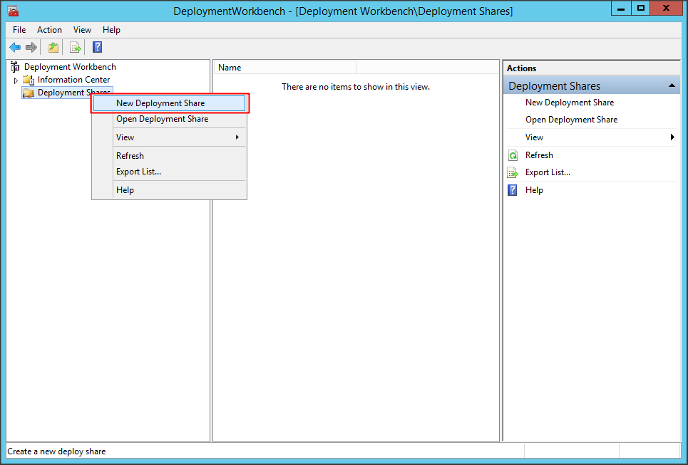 Mở Deployment Workbench => click chuột phải mục Deployment Shares và chọn New Deployment Share