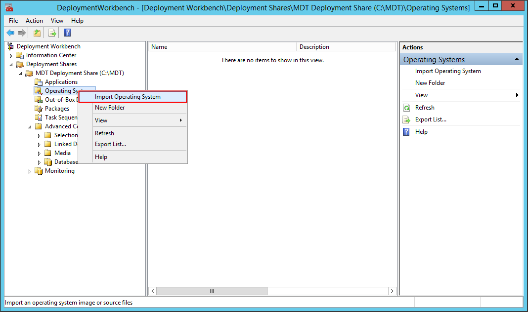 Click chuột phải vào mục Operating Systems và chọn Import Operating System