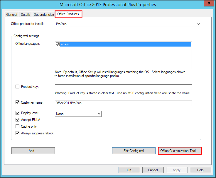 Ở tab Office Products, chọn Office Customization Tool