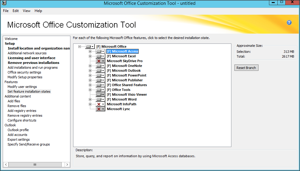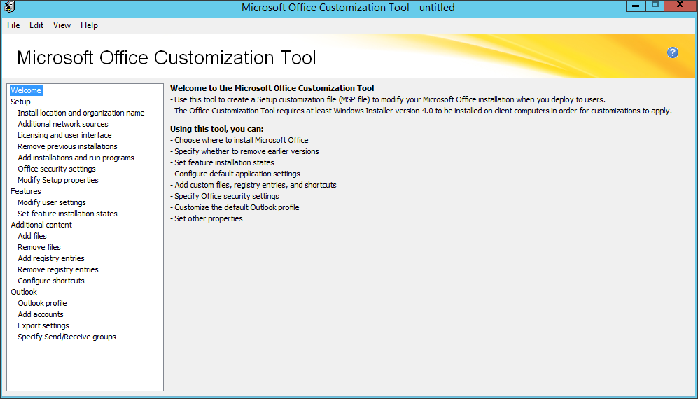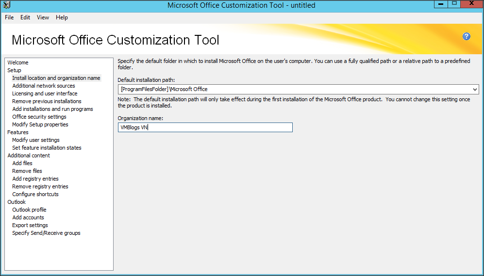 Giao diện Microsoft Office Customization Tool