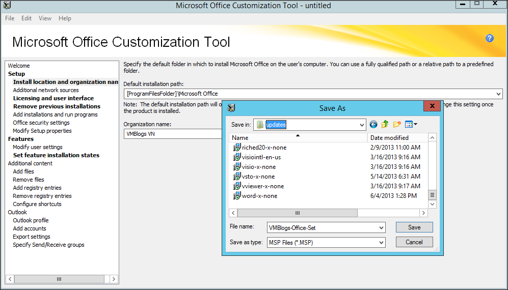 Một hộp thoại thông báo đường dẫn cần lưu cho file MSP