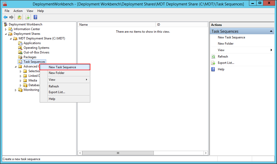 Click chuột phải mục Task Sequences => New Task Sequence