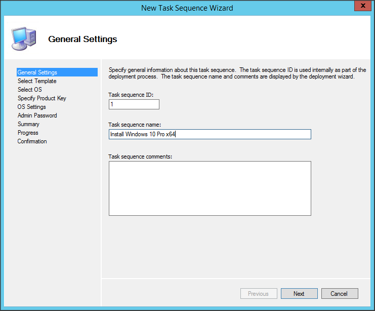 Nhập Task Sequence ID và tên