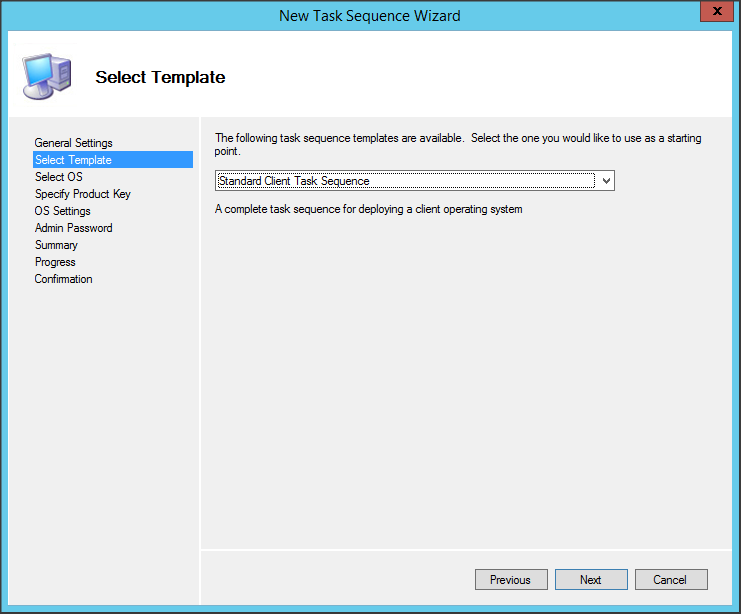 Lựa chọn Template có sẵn là Standard Client Task Sequence => Next