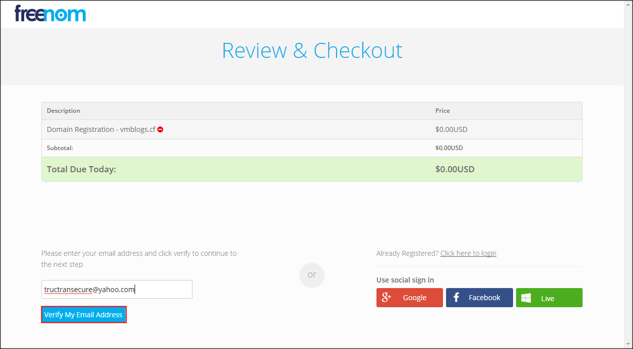 Click nút Checkout để tiến hành thanh toán (miễn phí)