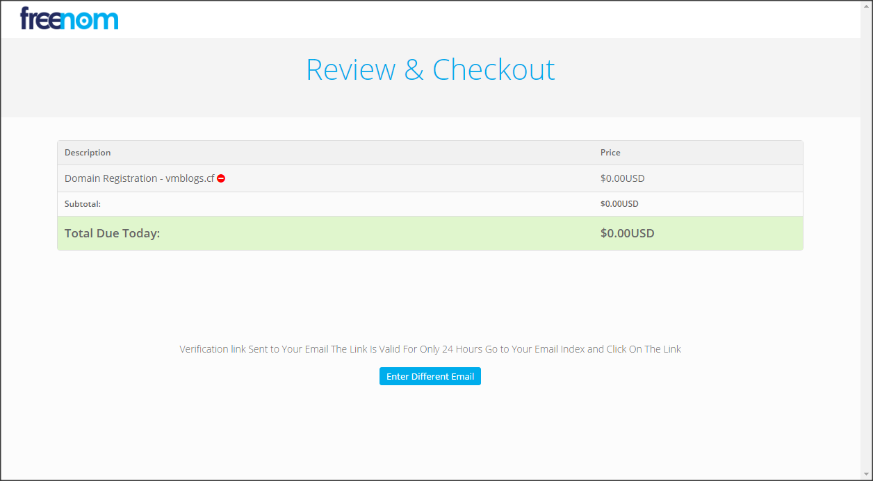 Freenom thông báo đã gửi mail xác nhận về địa chỉ email đã nhập ở phần trước. Các bạn truy cập email để click vào đường link xác nhận