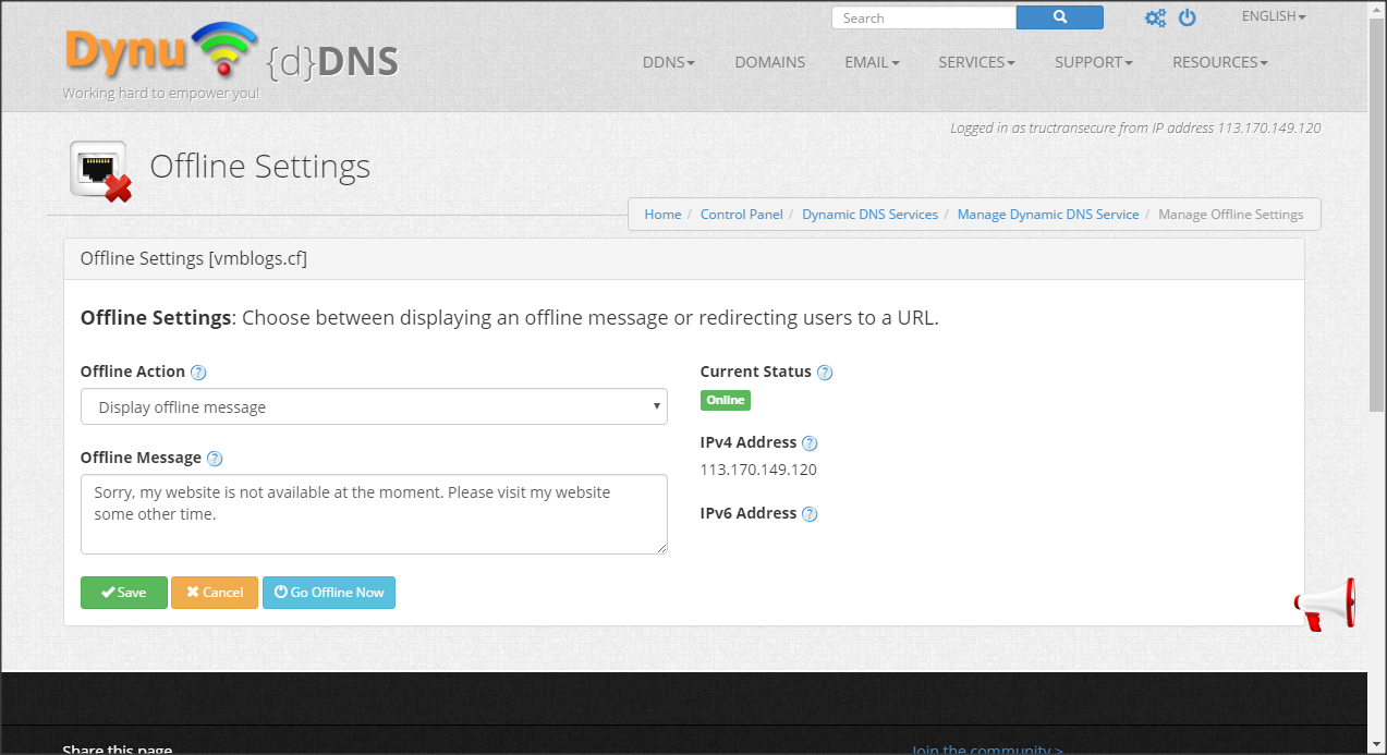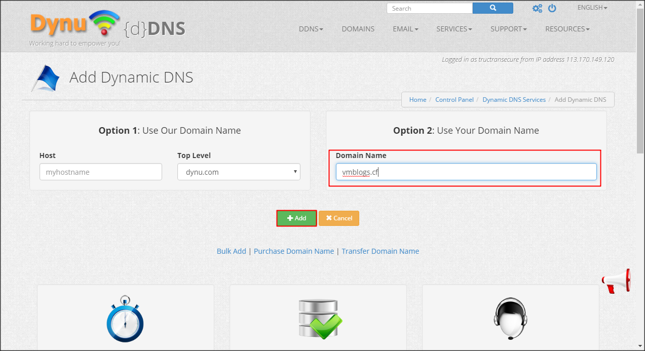 2/ Dịch vụ Dynamic DNS và quản lý domain Dynu.com