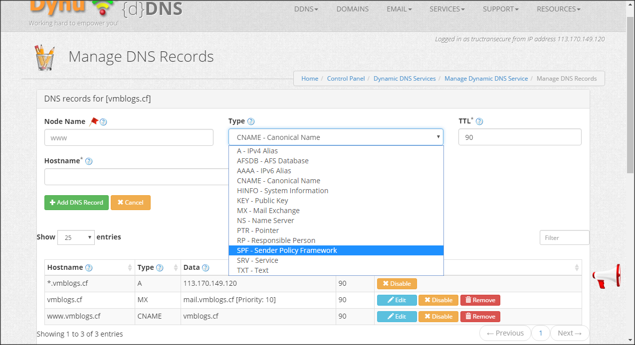 Có một lưu ý nho nhỏ lý do tại sao mình sử dụng Dynu.com để quản trị tên miền đó là vì Dynu.com hỗ trợ giải pháp Dynamic DNS miễn phí, phù hợp với rất nhiều người muốn sử dụng IP động của mình. Đối với các cá nhân hoặc doanh nghiệp đang sử dụng IP tĩnh thì có quá nhiều lựa chọn, có thể sử dụng luôn quản trị DNS của dịch vụ tên miền hoặc các dịch vụ khác chẳng hạn như cloudflare.com