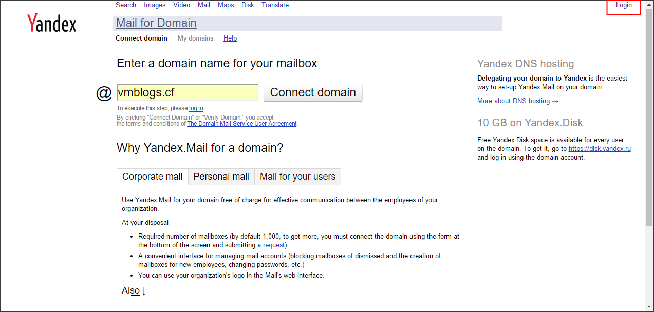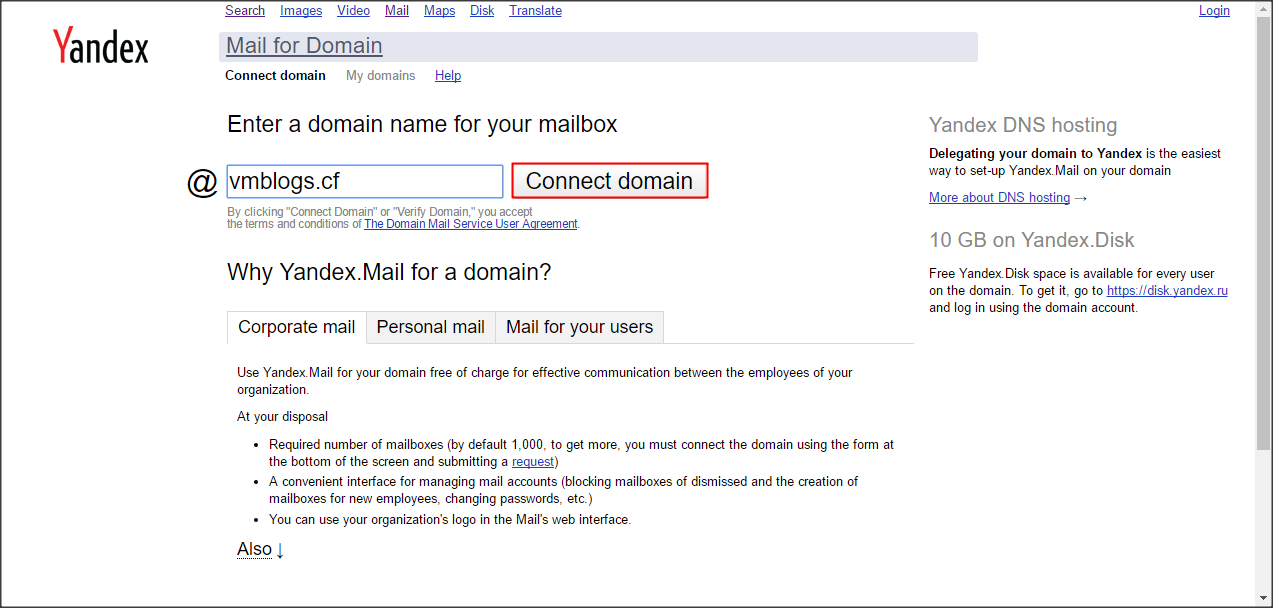 Để đăng ký các bạn truy cập vào địa chỉ https://domain.yandex.com