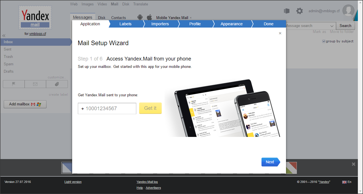 Yandex webmail