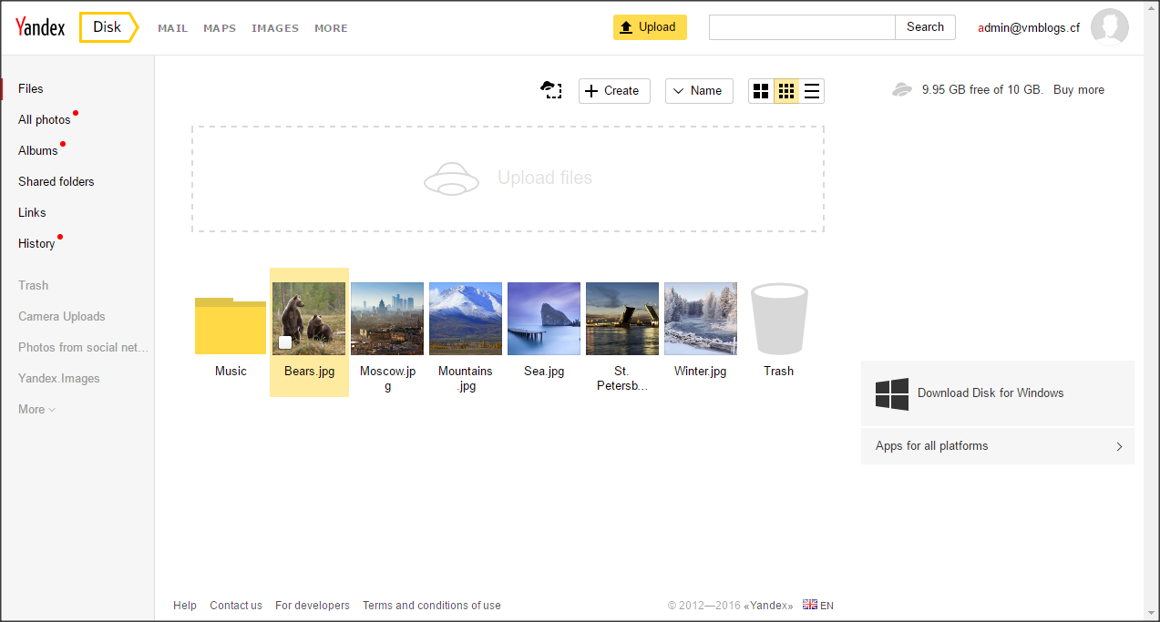 Ngoài email thì Yandex cũng có rất nhiều dịch vụ khác như Disk (lưu trữ 10GB cho mỗi tài khoản), Maps cho dịch vụ bản đồ, Translate…