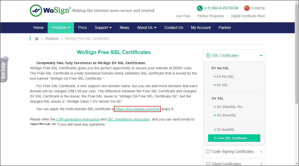 Để đăng ký Wosign miễn phí, các bạn truy cập địa chỉ https://buy.wosign.com/free