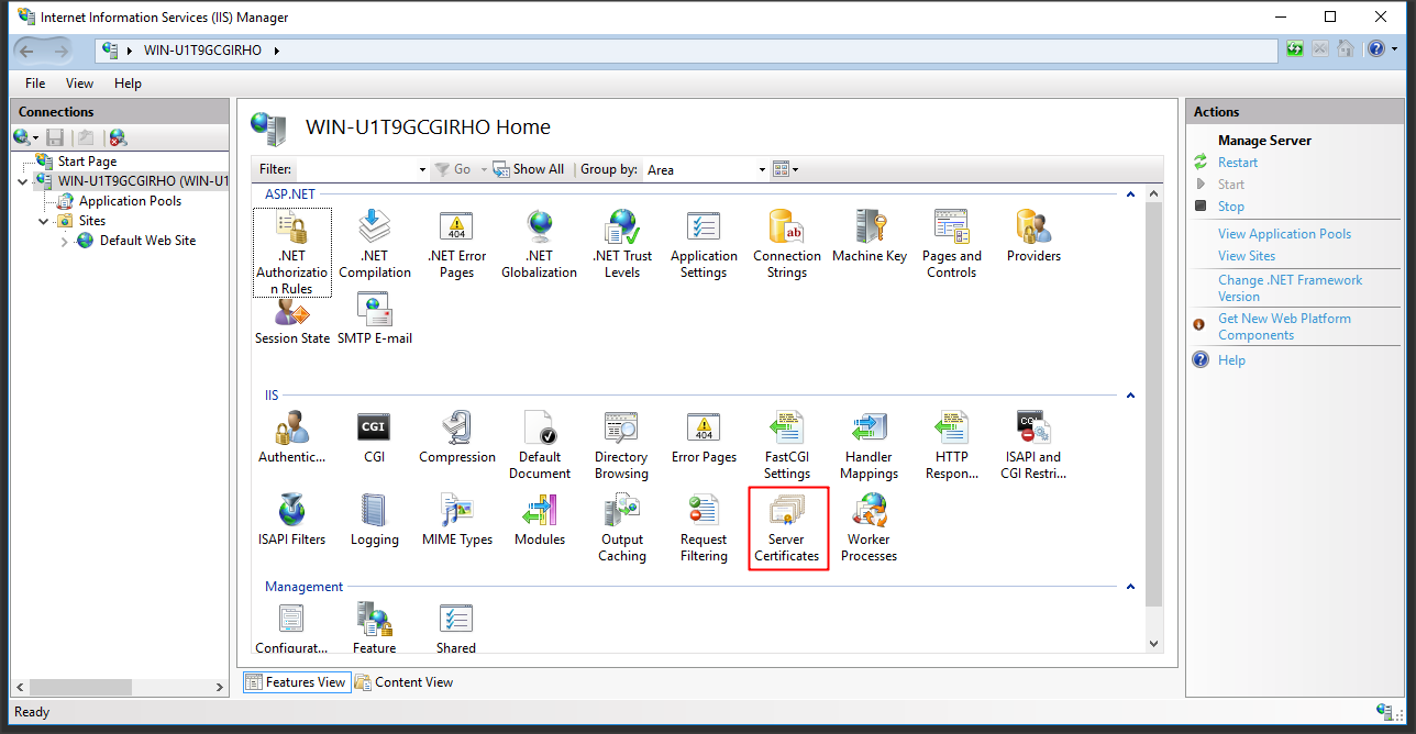Để tạo CSR trong IIS các bạn chọn server và click Server Certificates