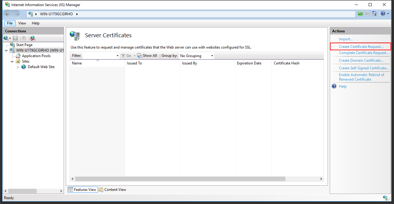 Click Create Certificate Request