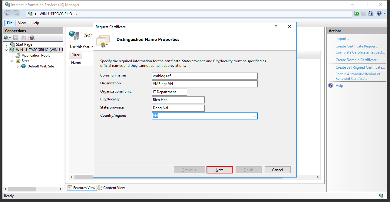 Nhập đầy đủ các thông tin, quan trọng nhất là common name.