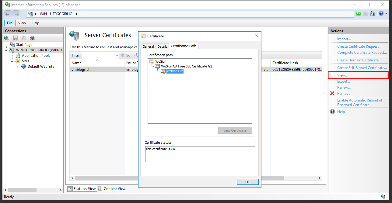 Wosign cung cấp chứng chỉ số miễn phí tương đối tốt, các trình duyệt hỗ trợ tốt trừ một số hệ điều hành di động cũ. Bên cạnh Wosign cũng có Let’s Encrypt tuy nhiên Let’s Encrypt chưa hỗ trợ tốt lắm cho Windows do đó trong bài này mình sử dụng IIS trên Windows Server là dùng chứng chỉ số của Wosign.