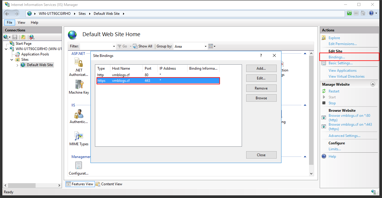 Cấu hình Binding để cho phép truy cập https và sử dụng chứng chỉ số từ Wosign