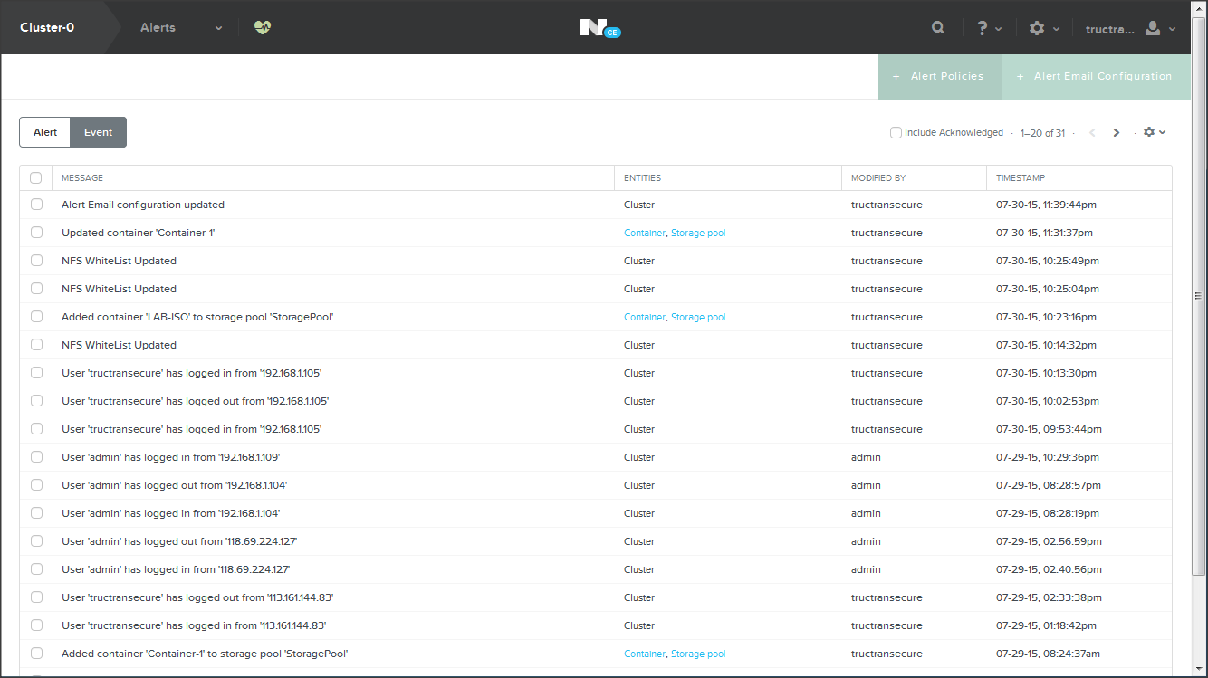 6-Nutanix-AlertAlert/Event – Các cảnh báo hệ thống và các bản ghi các sự kiện hệ thống