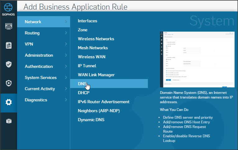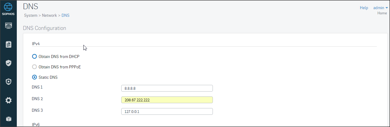 Cấu hình DNS tại Systems => Network => DNS