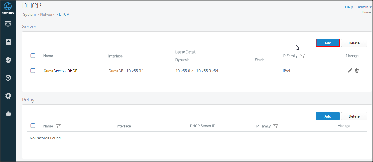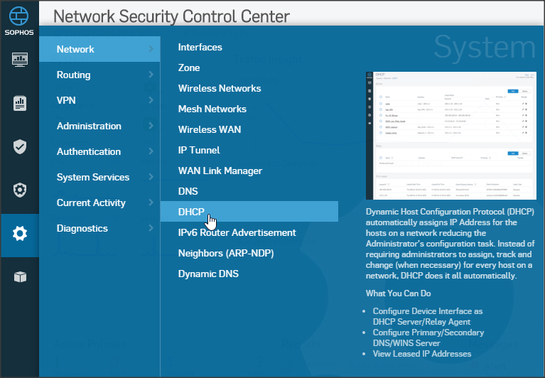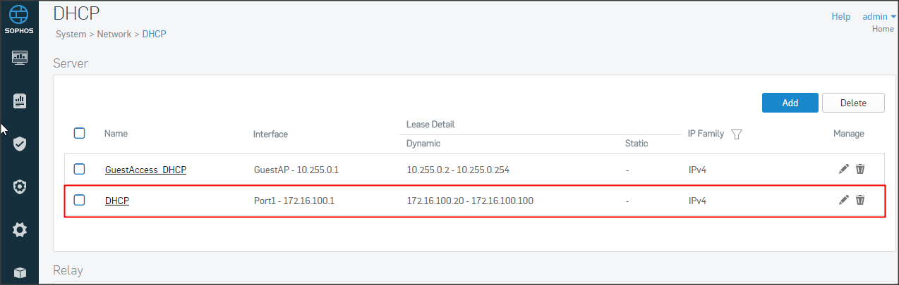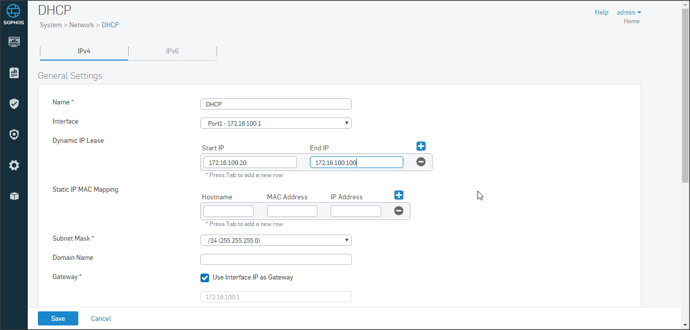 Cấu hình DHCP tại System => Network => DHCP