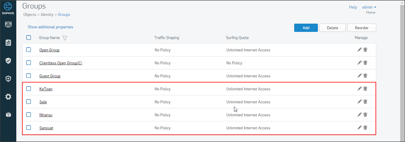 Tạo nhóm tại Objects => Identity => Groups