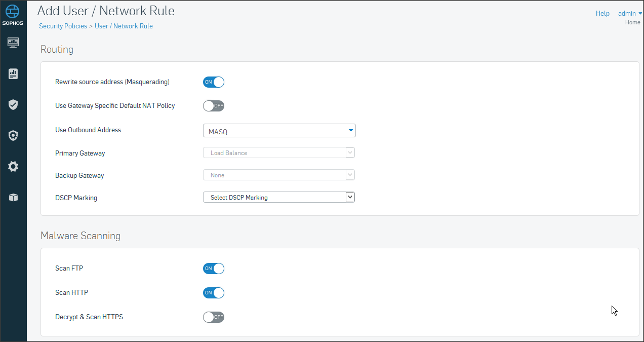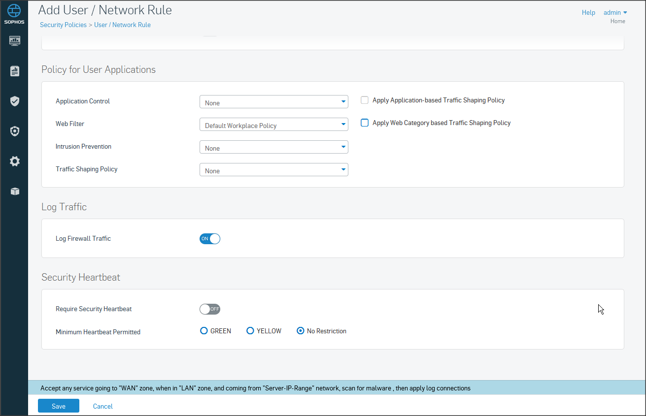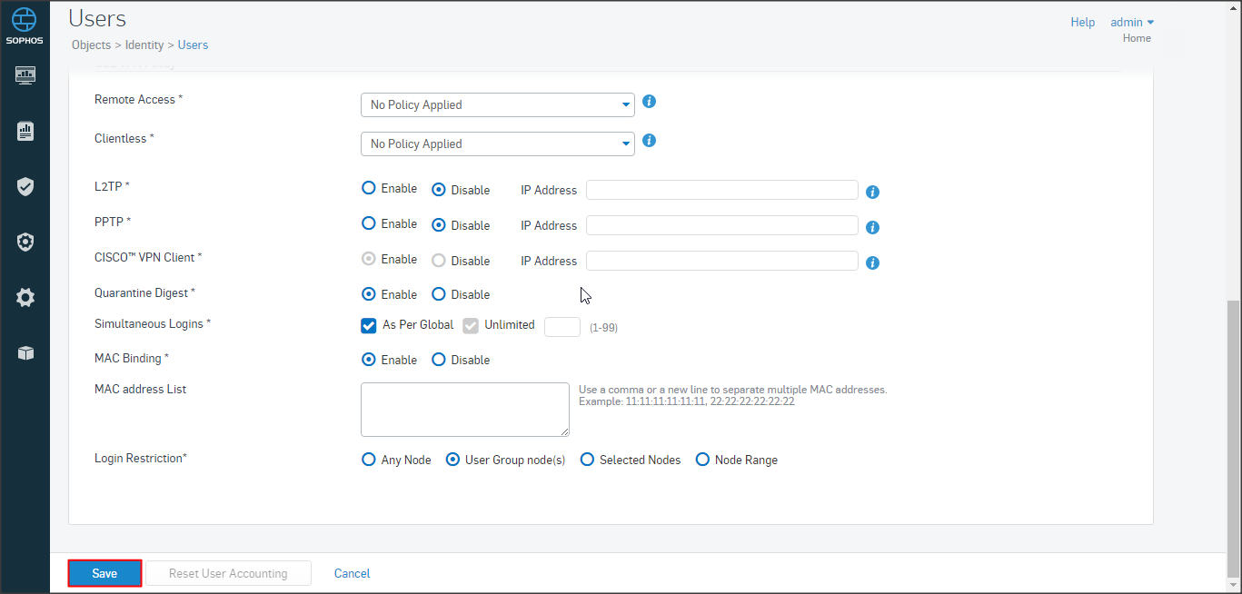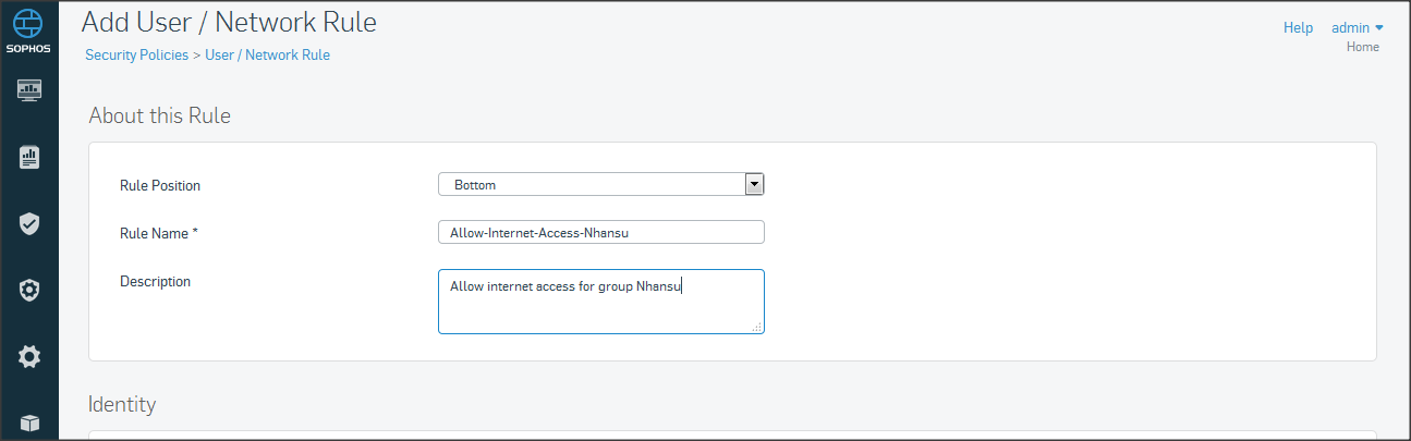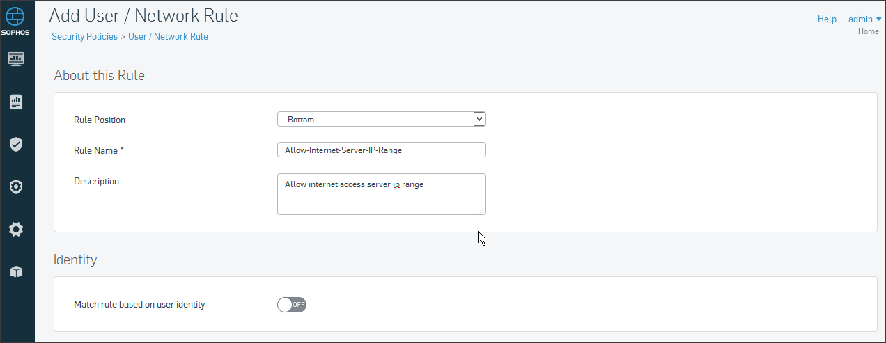 Tương tự như trên vào mục Policies click Create User/network rule
