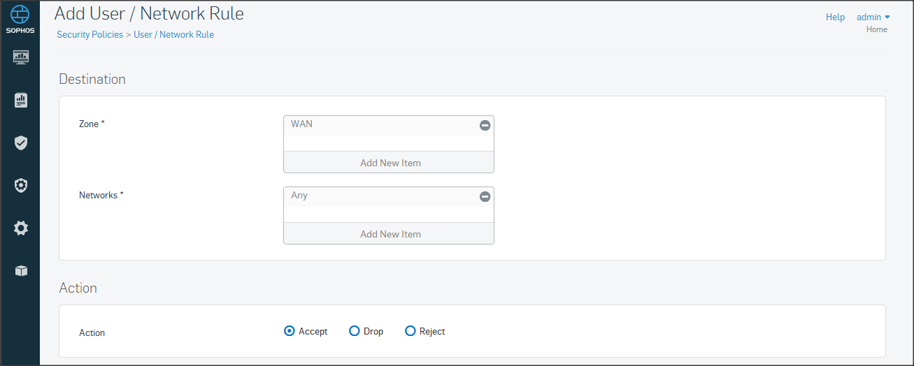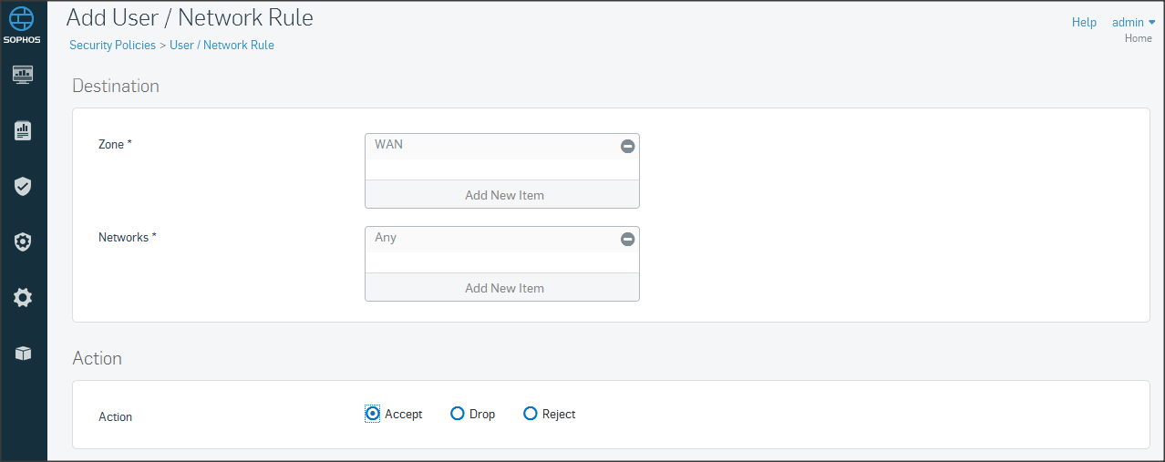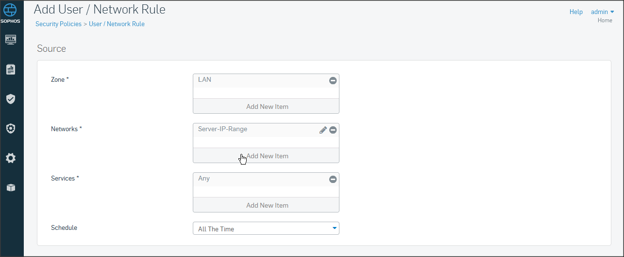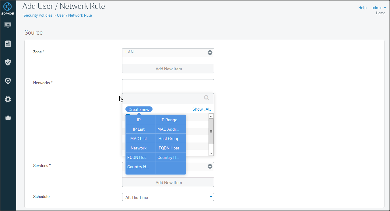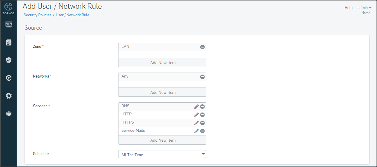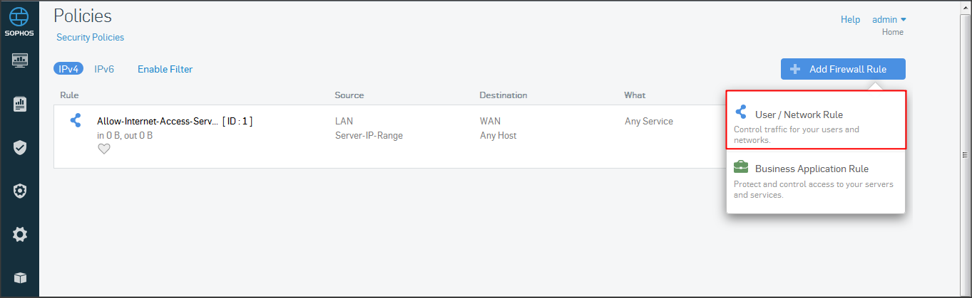Ở mục Policies, chọn Add Firewall Rule => chọn User/Network rule