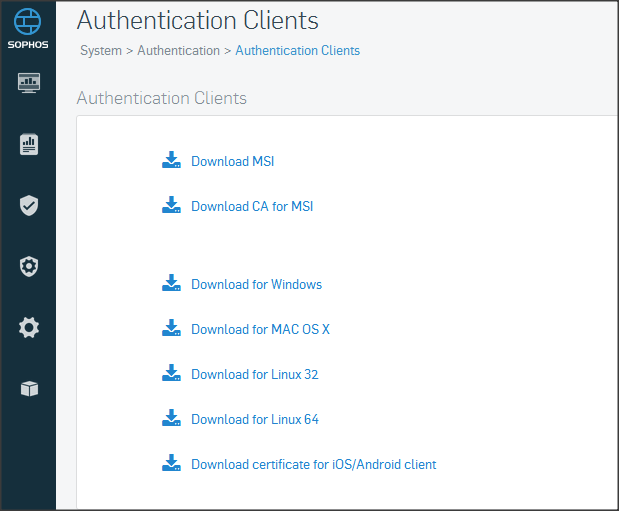 Để tải Authentication Client thì click Systems => Authentication => Authentication Clients