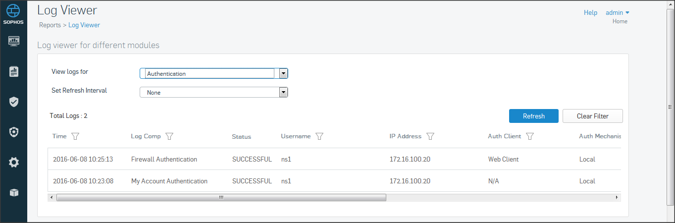 Để kiểm tra xem user đăng nhập thành công hoặc không thành công chúng ta sử dụng Log viewer mục Authentication